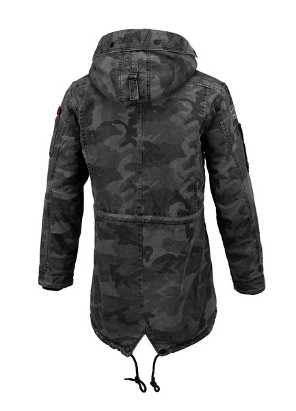 - wydłużony fason wzorowany na kurtce wojskowej typu parka