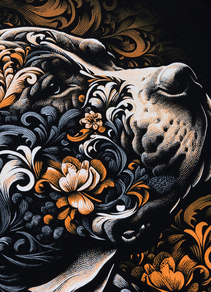 - napis PITBULL na klatce piersiowej